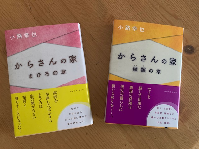 今日は、小路幸也さんの『からさんの家 まひろの章』『からさんの家 伽羅の章』です。古い洋館に住む老若男女の物語です。複雑な生い立ちのまひろと、詩人で文筆家でまひろの義祖母のからさんのふたりの視点から描かれています。なにしろ洋館に住む人たちは皆、才能豊かでいい人ばかりで……『東京バンドワゴン』の血の繋がらないバージョンといった感じです。